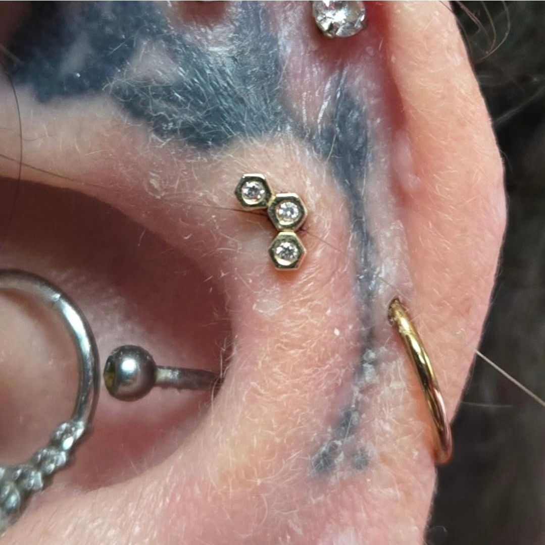 - Rook, tragus, daith, conch, forward helix, snug, septum, vertical labret - $30
